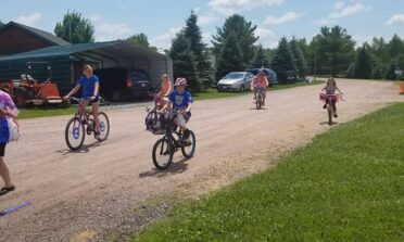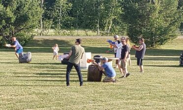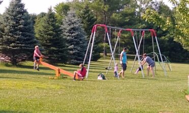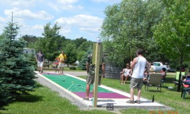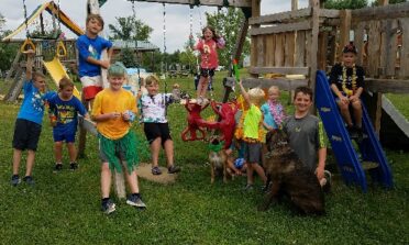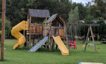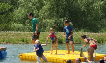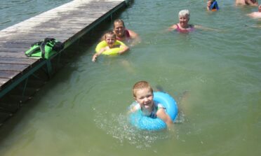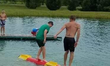 - Swimming pond and beach with children’s kayaks, paddle boats, a synthetic log roll, a slide, floating island and dock
